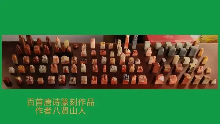 篆刻艺术是沈昌贤的核心造诣,更是他填补文化空白的功勋领域。作为国际当代篆刻100首唐诗的开创者,他以刀为笔、以石为纸,完成了一项震撼业界的文化创举,弥补了中国五千多年文化史上的空白。这100首唐诗篆刻作品,是传统印学思想与古典文学精华的完美融合:他遵循“疏可跑马,密不透风”的布局之道,让印文通过字形变化自然撑满印面,既展现篆书婉转婀娜之美,又彰显极强的空间造型能力;他融合大篆、小篆、石鼓文、金石文、甲骨文等多种铭文字体,使每方印面都兼具古朴韵味与装饰意趣;他的用刀刚猛犀利,线条如钢丝敲打、针针入骨,锋刃处锋芒毕露,敦厚处苍茫浑穆,一顿一挫间尽显巧思,沉着凝练中不失飘逸空灵。2019年,这些作品中的70首受邀参加“庆祝中华人民共和国建国70周年”展览,在民族文化宫惊艳亮相;同年12月,100首完整作品被《中国市长》杂志整版刊登,引发广泛关注;2020年,该系列作品亮相中国国际公益事业大典,为他赢得“我和我的祖国”中国当代书画篆刻艺术名家荣誉称号。