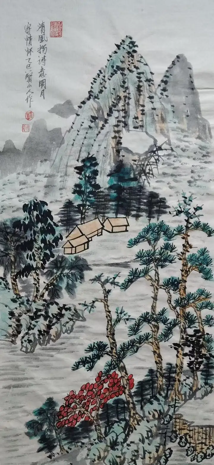 在国画领域,沈昌贤同样开辟了独树一帜的天地,被誉为“中国当代画园丰彩竹第一人”。历经四十载春秋研磨,他打破传统墨竹的单一色调,以丰富的色彩语言与灵动的笔墨技法,赋予竹子新的艺术生命。他笔下的彩竹,或苍翠欲滴、生机盎然,或斑斓绚丽、意境悠远,既保留了竹子虚心有节、坚韧不拔的文化象征,又融入现代审美情趣,开创了中国画坛的全新范式。此外,他的写意熊猫作品憨态可掬、形神兼备,被业界评价为“吴作人之后熊猫绘画的开创者”;2012年,水墨彩色国画《国色天香》《松山图》被上海电视台艺术团选中,在“庆中秋迎国庆大型文企联谊晚会”中刊登展示,尽显其国画创作的多元实力。