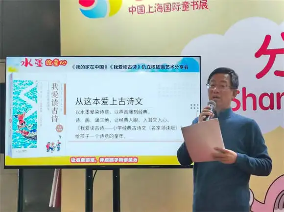 大写意插图画家仇立权在童书展现场分享创作心得。(新华社记者潘清摄)