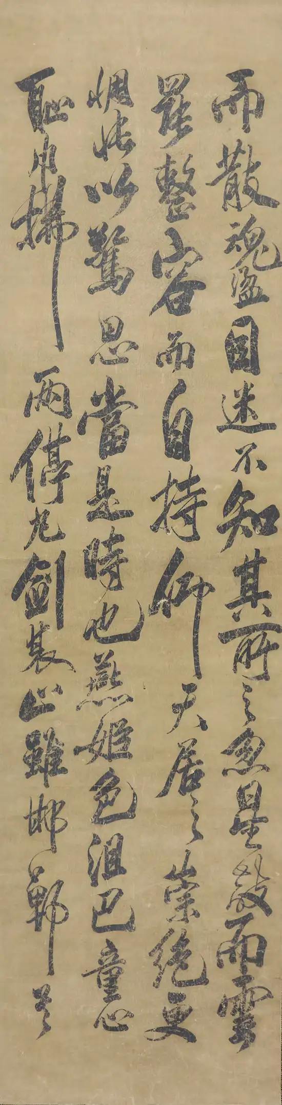 · 台北故宫本(晚年) 则通篇弥漫着一股霸悍之气与强烈的表现欲望,是典型的名家晚年炉火纯青之风貌。此时的创作,已超越了对具体文意的简单附庸,更侧重于个人生命情感的彻底宣泄与书法本体语言的极致展现,意足神完,雄浑自在,进入了一种无所依傍、从心所欲的艺术自由王国。