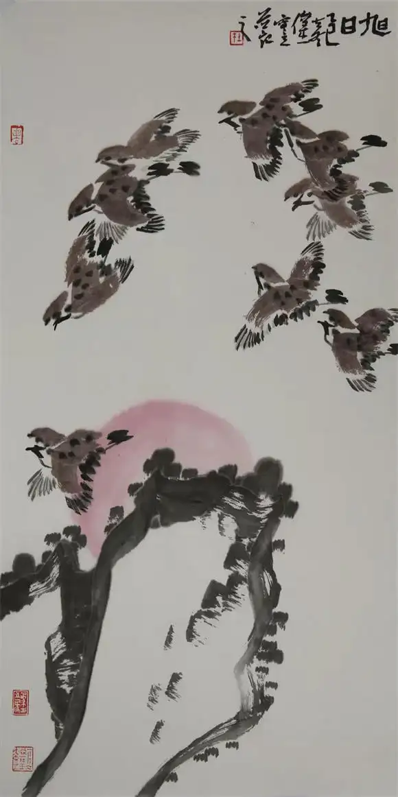 俊杰笔下的动物尤其生动可爱,松鼠灵活轻盈,禽鸟富有表情,都非常难能可贵。特别是画雄鹰,孙其峰老师评价他“直可以假乱真”,乃是极高的赞誉。曾经的军旅画家,在艺术之路上通过异乎寻常的刻苦用功,而终于抵达了形神兼备、高雅脱俗之境。 ——徐庆平