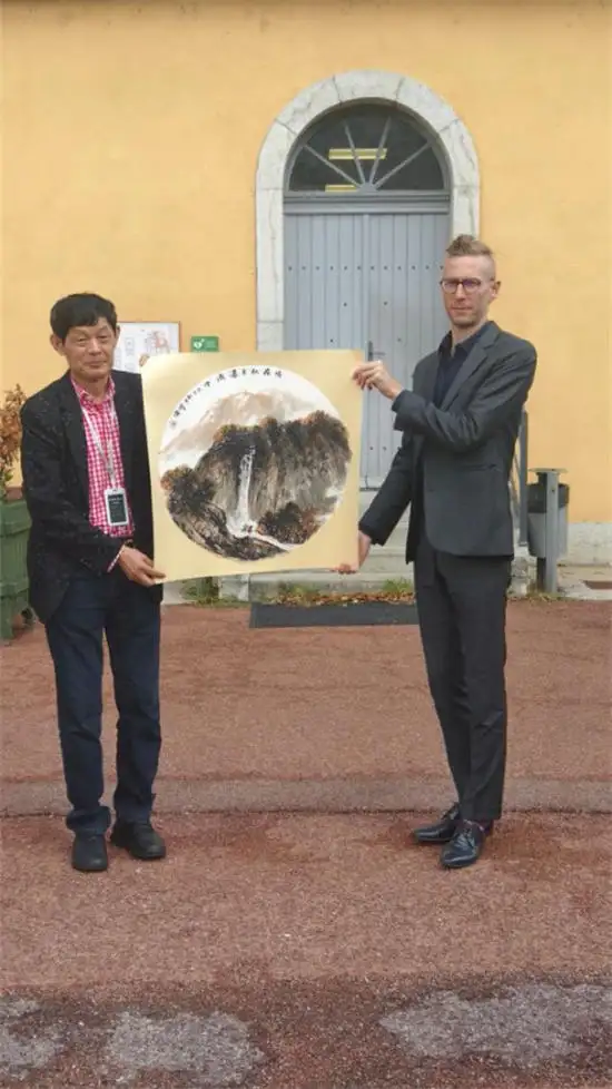 最后学院领导与中国艺术家代表团在学院一层大厅举办了艺术作品收藏仪式。