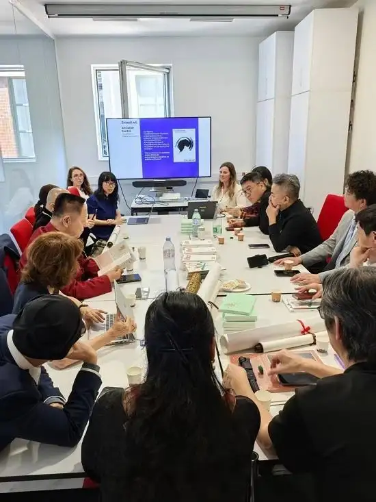 《五星出东方——法国站》世界顶级院校访问交流系列活动,第一站巴黎文理研究大学(PSL)——巴黎高等装饰艺术学院校区。2025年9月19日下午14:30 ,中国艺术家代表团抵达巴黎文理研究大学(PSL)——巴黎高等装饰艺术学院校区,学院现任院长伊曼纽尔·蒂布洛(Emmanuel Tibloux)、国际合作主管、教授:艾米丽·埃蒙德女士(Ms.Emilie · Emond)、国际合作专员:露西尔·阿诺德女士(Ms.Lucile·arnould)热情的接待盛怀杰老师。